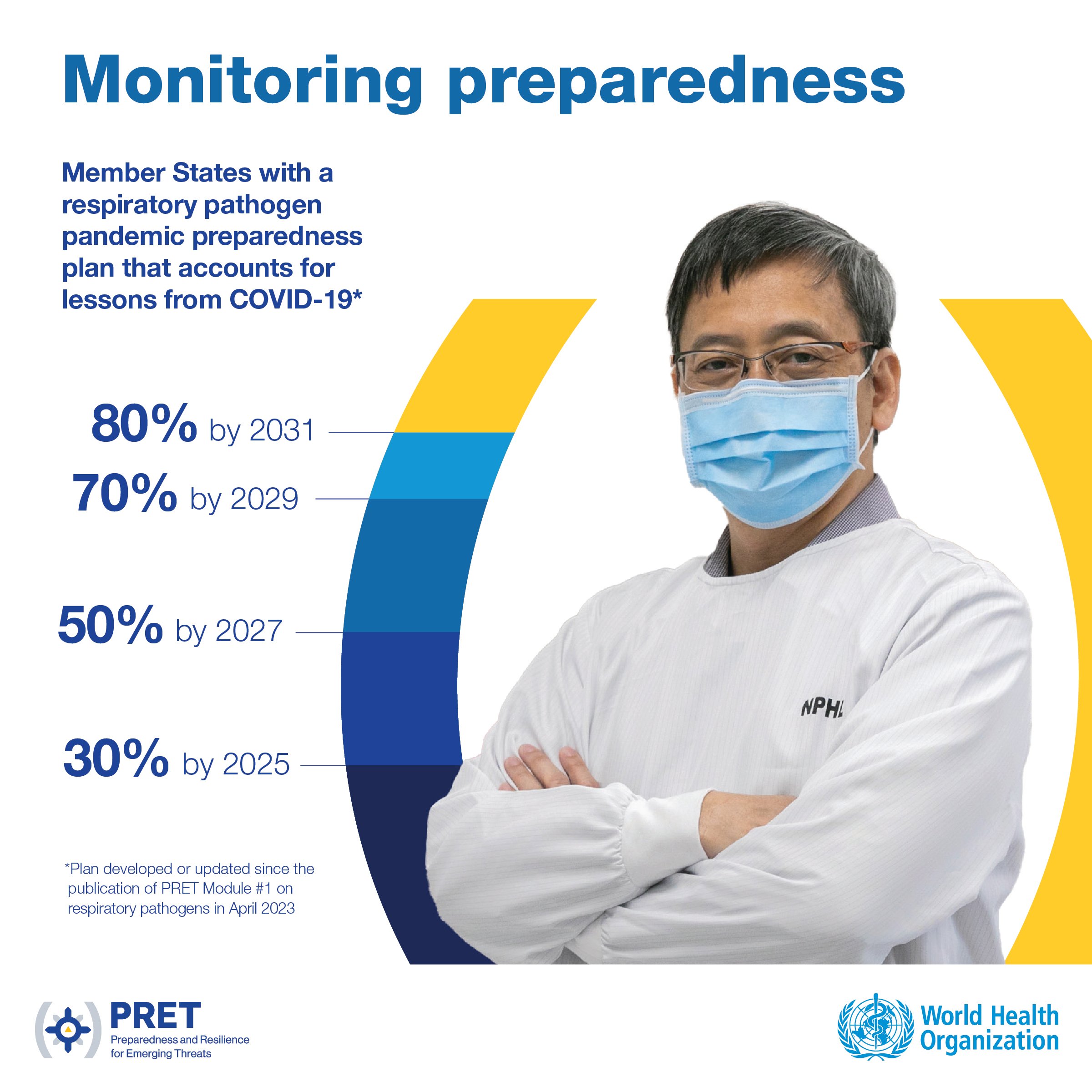 Applying learnings from the COVID-19 pandemic, Member States have started updating their plans for future respiratory pathogen pandemics. WHO has set global targets for Member States to develop or update their respiratory pathogen pandemic plans.