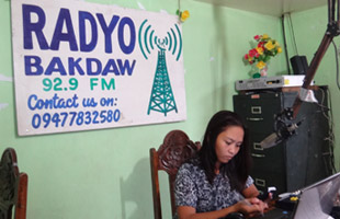 Radyo Bakdaw, a local radio station in Guiuan set up by Internews right after Typhoon Yolanda at the south-eastern tip of Eastern Samar, has been collecting public health information from WHO, the Department of Health and other partners, and broadcasting this to the public, who listen on their mobile phones and windup radios distributed by Internews and send questions by text message.